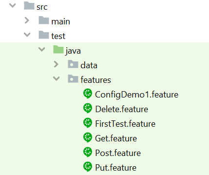 - Create into the project src/test/features each file.feature that you will test depending on your test scope