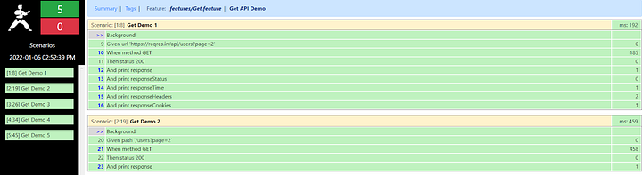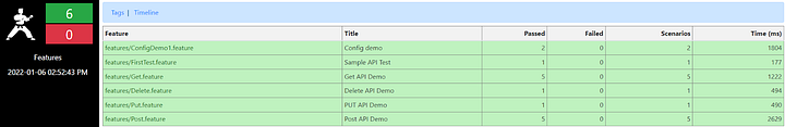 To end this article; I will talk about reports. It’s one of the aspects that I like most about Karate because it is swift, intuitive, and provides detailed information. For example, when I run about 15 test cases, the execution takes less than 7 sec; of course, this time depends on the API, data, and environment, but If you consider that It is taking too much time, you can implement it by using parallel tests