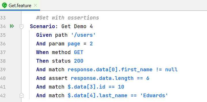 In this case, we use the method GET and do the assert through them; if the status is different to 200, the test case will fail.