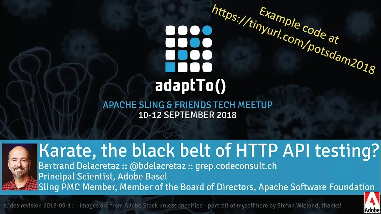 In this talk we'll use Karate to test Sling-based HTTP APIs, demonstrating how expressive and readable Karate tests can be, with the goal of using them as reference documentation for our HTTP APIs. Our examples will be available in the Sling Whiteboard for you to play with.
