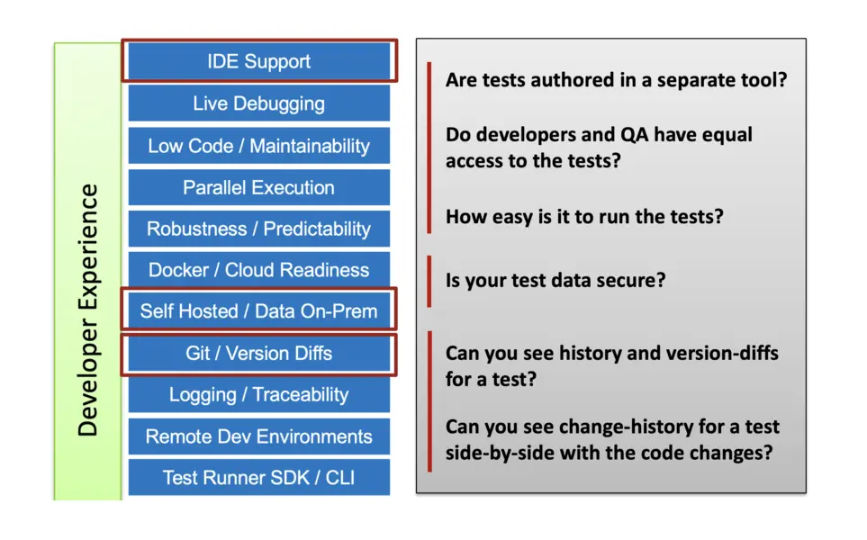 Let us zoom in on three of the Test-Automation capabilities which fall under the category of Developer Experience.